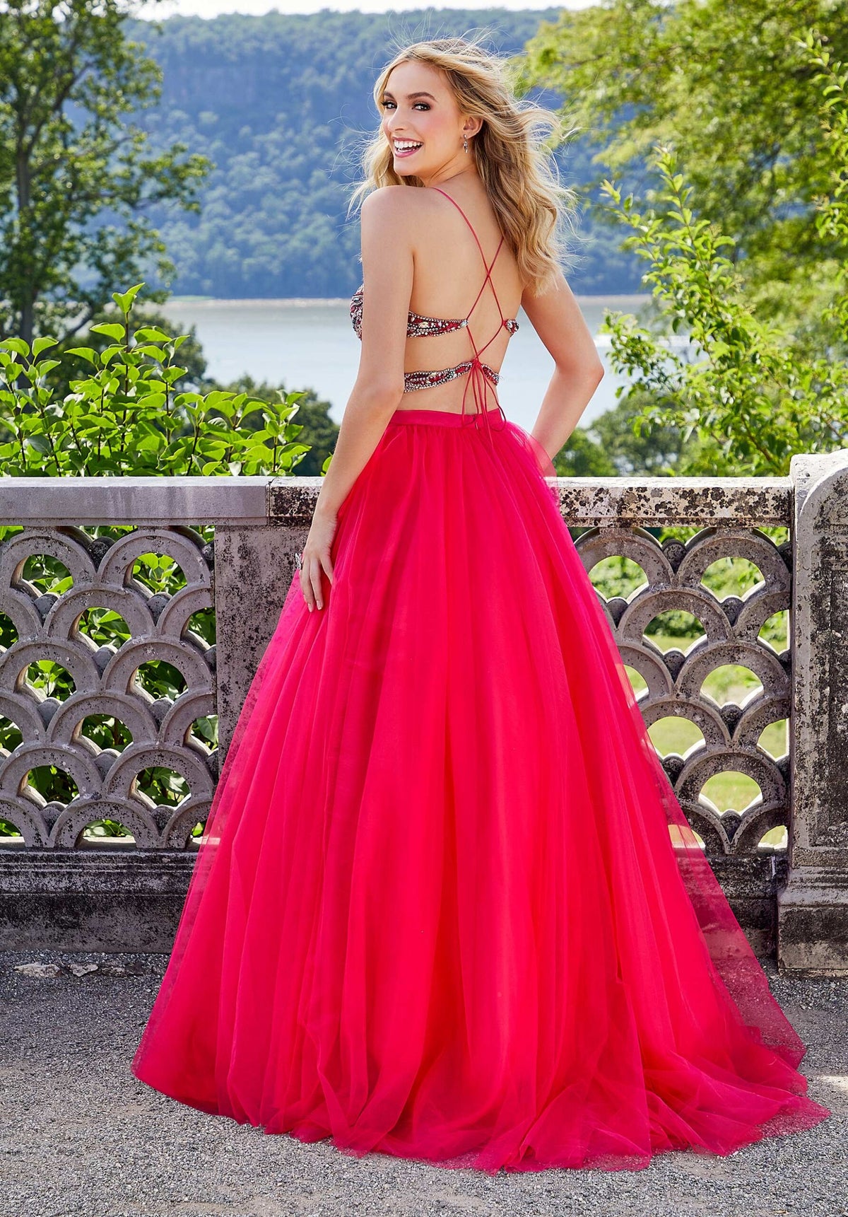 This striking two-piece gown radiates confidence and charm, making it the ultimate choice for a show-stopping entrance at any special event.