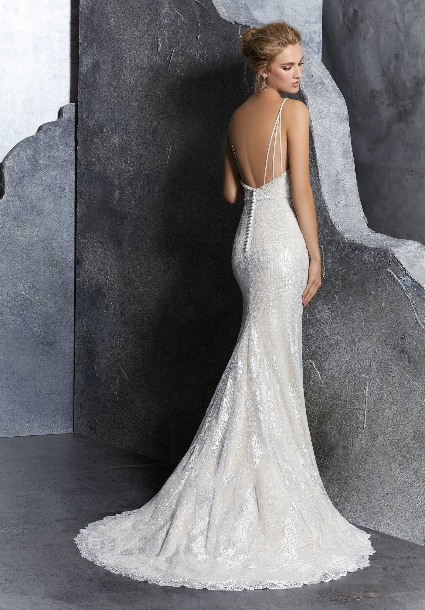 Adorned with intricate frosted embroidered lace appliqués and subtle crystal beading, the Kendra 8201 sparkles beautifully with every movement, catching the light in the most enchanting way. Layers of tulle and Chantilly lace lend depth and texture, while the illusion back with delicate covered buttons adds a refined, romantic finish. Every detail reflects Morilee’s signature craftsmanship and dedication to bridal artistry, making the Kendra 8201 the perfect gown for the bride who dreams of feeling effortlessly elegant, radiant, and unforgettable on her special day.
