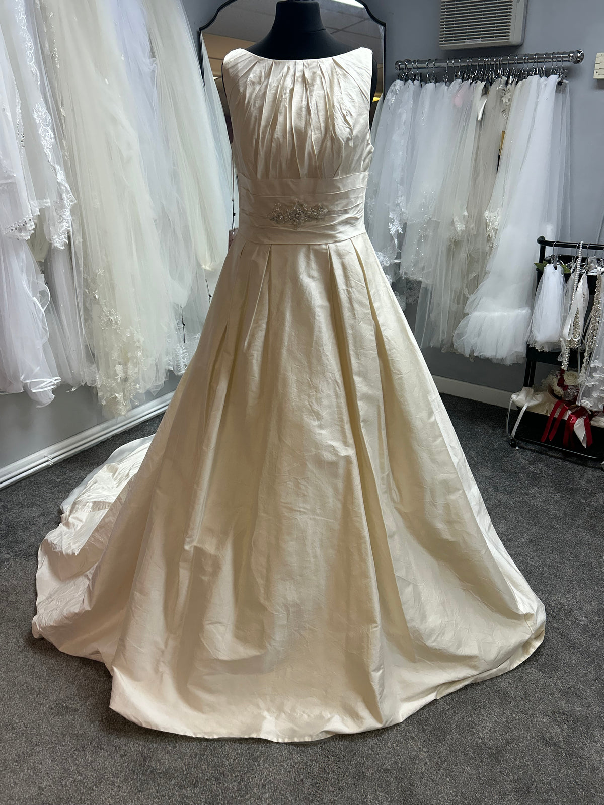 The OUA020 gown by Marylise is a refined UK size 6/8 bridal dress that marries timeless elegance with contemporary design. Crafted with premium fabrics and expert tailoring, this gown offers a flattering fit and effortless style for the modern bride. Elegant details and clean silhouette make this dress perfect for a memorable ceremony or elegant reception. Ideal for brides looking for designer quality without designer prices. Available at Once Upon a Budget in Cwmbran, South Wales, where exceptional value meets bridal luxury.